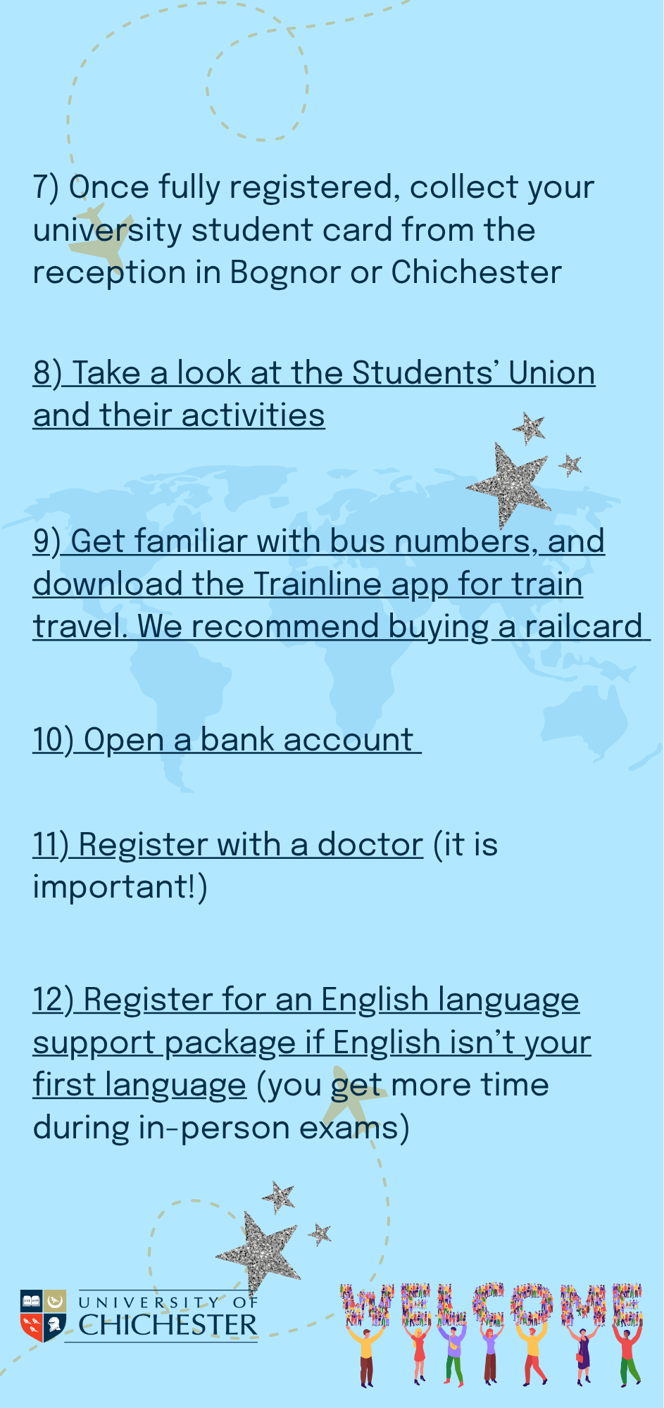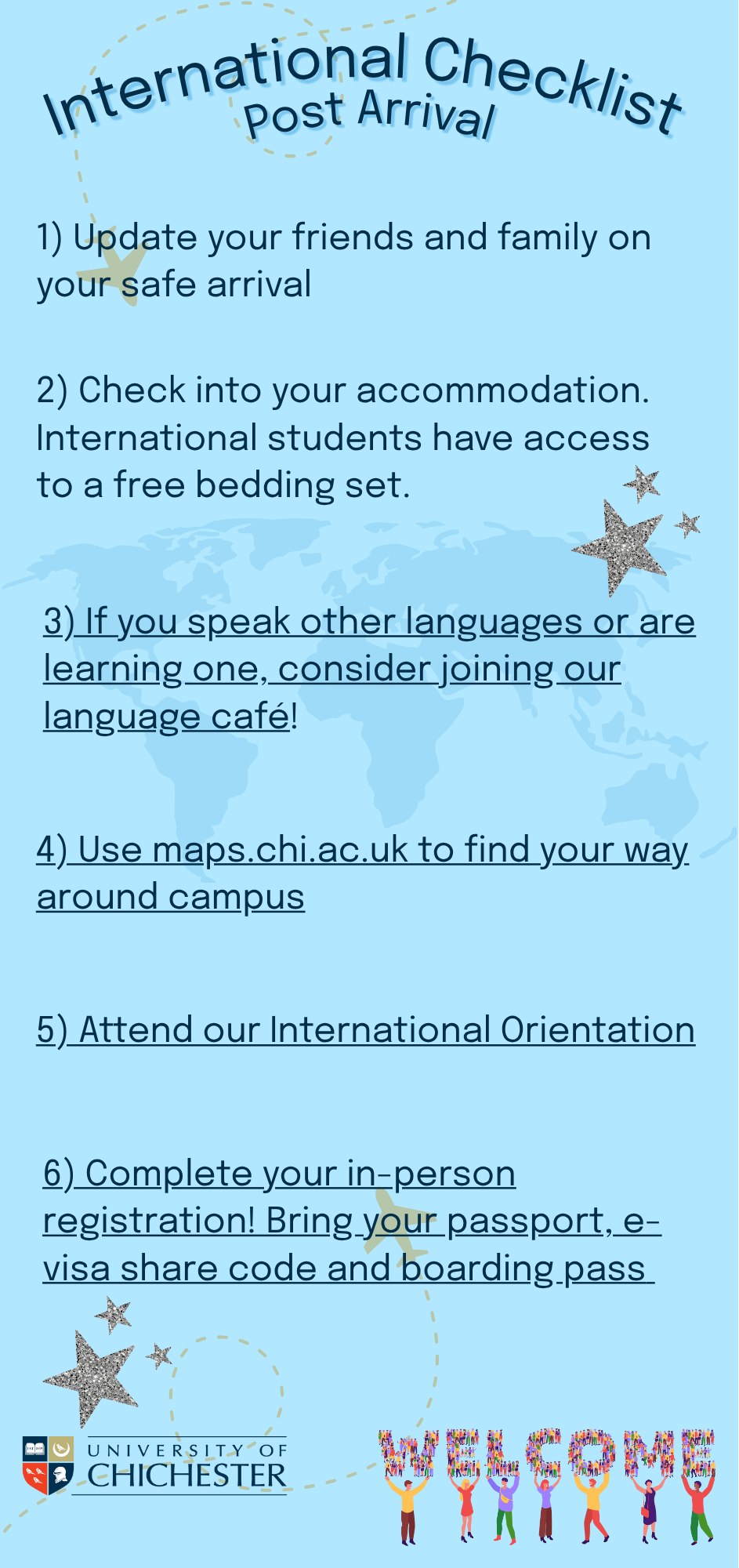 The Chichester International Advice Be Prepared website aims to provide new international students with all the information they need to prepare for their arrival to the UK. It covers a wide range of topics that will support a smooth transition into studying in a new country, including actions and checklists to help students to be proactive in their pre-arrival preparation.